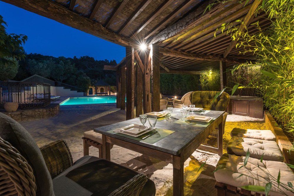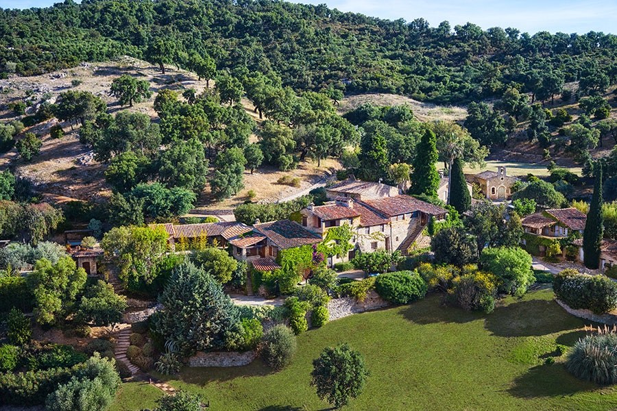 Součástí pozemku jsou dva bazény, náměstí, které prošlo významnou krajinářskou úpravou, venkovní kuchyň s jídelnou, skatepark, tělocvična a vinné sklepy. V oblasti se nachází 300 let staré duby, olivovníky a vinice.