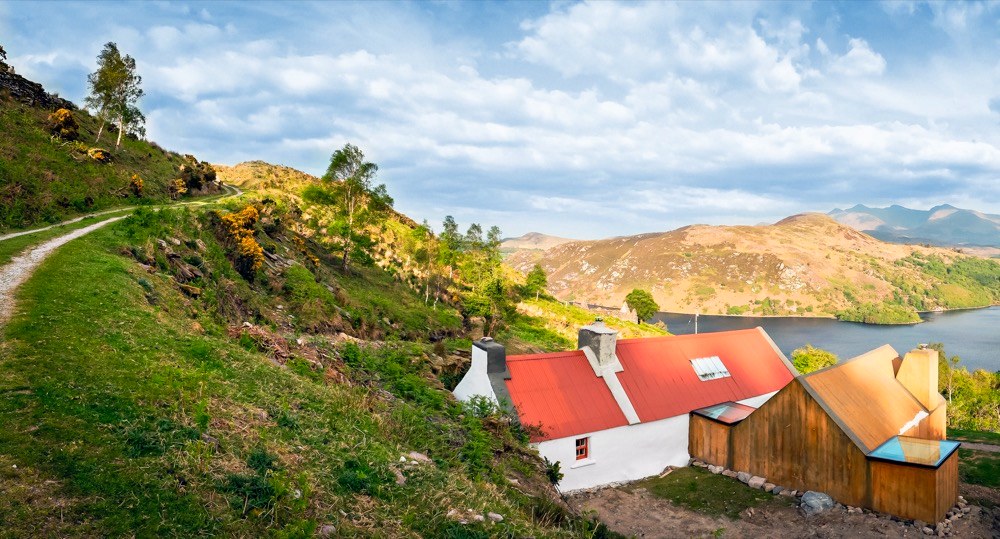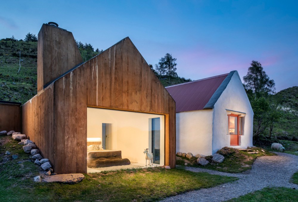 Zatímco početnou rodinku domácích koz nechávaly kamenné stěny bez omítky, hliněná zem a došková střecha pokrytá zbytky vysušeného mechu zcela chladnými, nový majitel letité srubové chaty měl jasnou vizi, jak s lidovou stavbou, kterou příznačně pojmenoval Lost Cottage, naloží. Za pomoci architekta navrhli přistavět ložnicový blok, který nabídne dokonalý výhled do zvlněné krajiny s majestátními horami. Přístavba napodobuje proporce původní chaty, ale moderní prosklení dává tušit, že jde o novější architekturu.