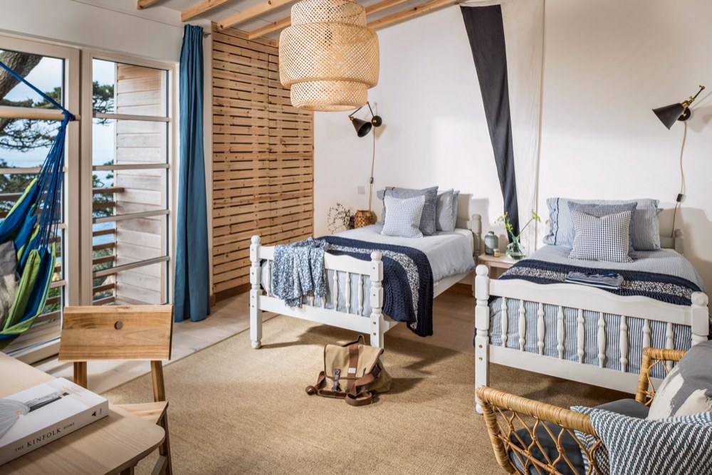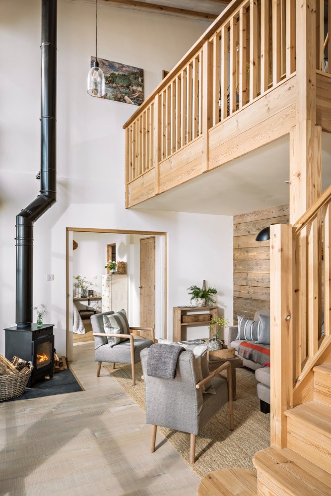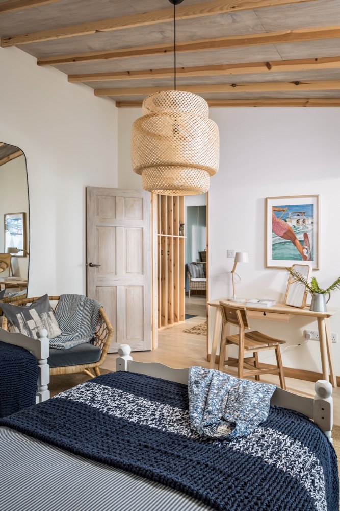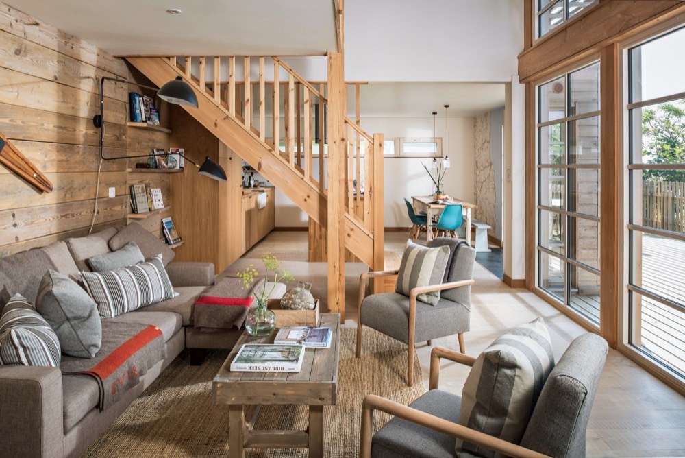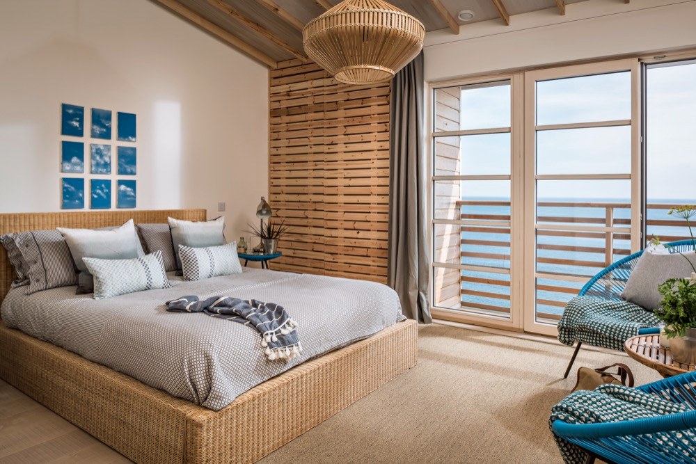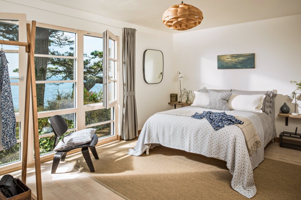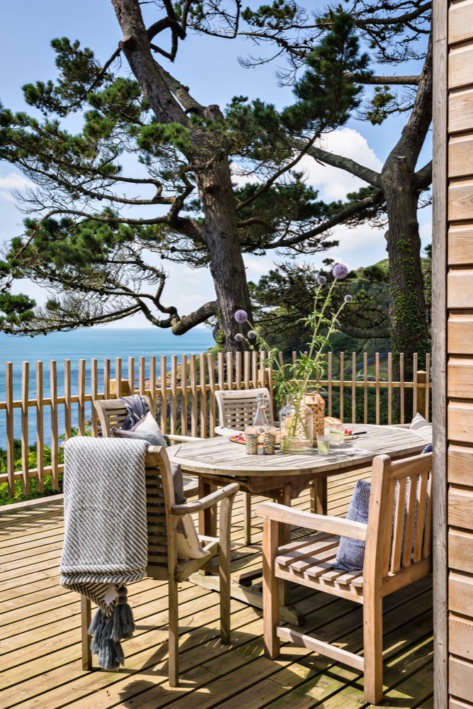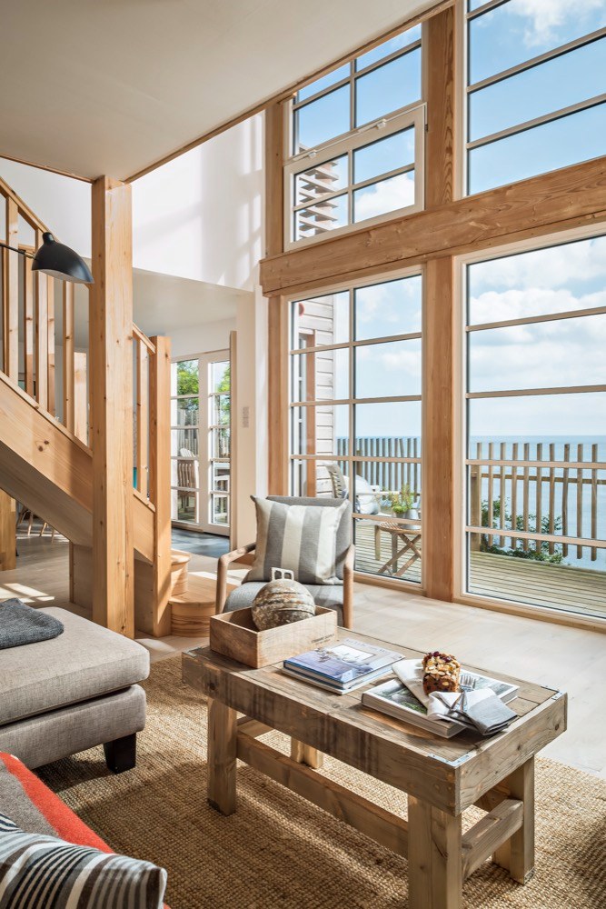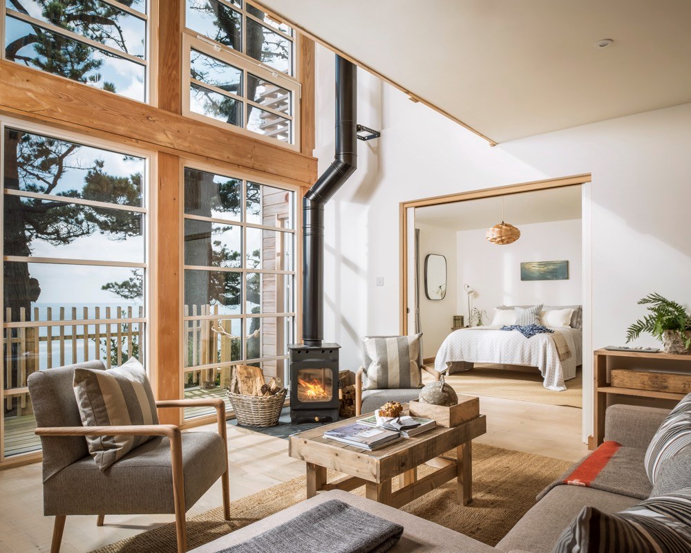 Ze zátoky nahoru vede strmá klikatá cesta, která může v slabších povahách vyvolávat obavy. Pokud je ale překonáte, vystoupáte k nádhernému stavení, které bylo dřív vojenskou chatou, ale prošlo nákladnou rekonstrukcí, aby mohlo své obyvatele rozmazlovat a vytvořit jim prostředí pro zasloužený odpočinek. Přestože je prostředí ryze anglické, interiér je silně ovlivněný útulným skandinávským stylem. Velká okna, kterými se tu nešetřilo, způsobují, že se místnosti koupou ve světle, a luxusní výhled je k dispozici nejen z obývacího pokoje. Masivní dřevo, které dokáže příjemně zútulnit jakýkoliv interiér, tady nacházíme na podlahách, stropních trámech, obkladech stěn a je z něj vyrobena i většina nábytku. Potkává se tu několik typů dřev různých barev, ovšem všechna mají světlý odstín, takže prostor opticky nezahlcují a nepolykají světlo. Vše je zařízeno jednoduše a účelně, zvolené materiály jsou většinou přírodní, barvy neutrální nebo tlumené, laděné do modro-šeda. V kuchyni nebo koupelně sice nechybí moderní vybavení a funguje tu samozřejmě i wi-fi, nicméně vymoženosti poskytující stereotypní zábavu tu budete hledat marně.
