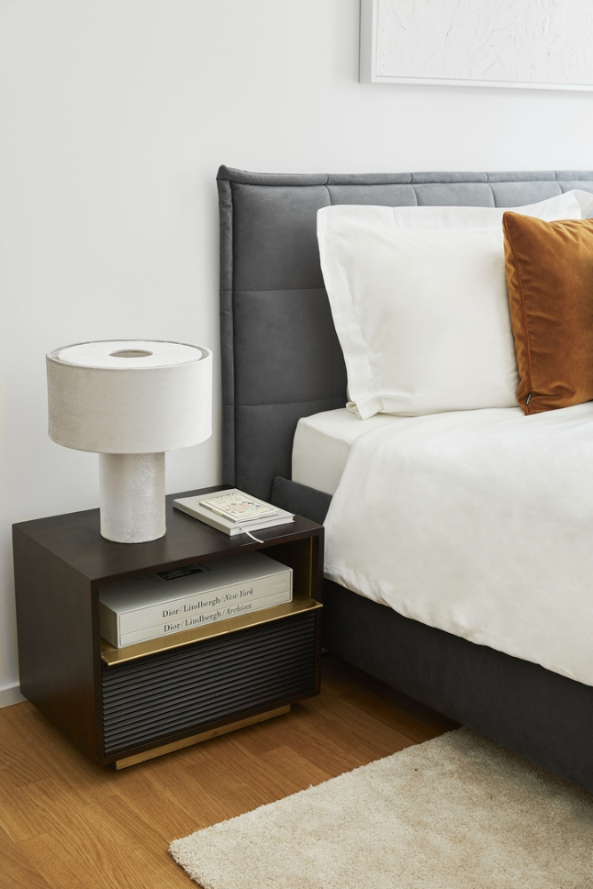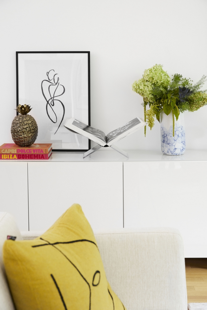 „Když nevytváříme obsah pro blog TheSkinnyandtheCurvyone.com, který provozuji se svou nejlepší kamarádkou Sophií Thorer, nebo Instagram (@ms_wunderbar), chodíme společně s Maximiliánem po bleších trzích a vždy něco najdeme. Jako je třeba ozdobný ananas od švýcarského výrobce, který je již dlouhou dobu naší hlavní dekorací. Vybírám také knihy pro konferenční stolek, starý Ford Mustang z roku 1967 ze sbírek Maxi Burago a Matell a čerstvé květiny. Vždycky chci něco zvláštního.“