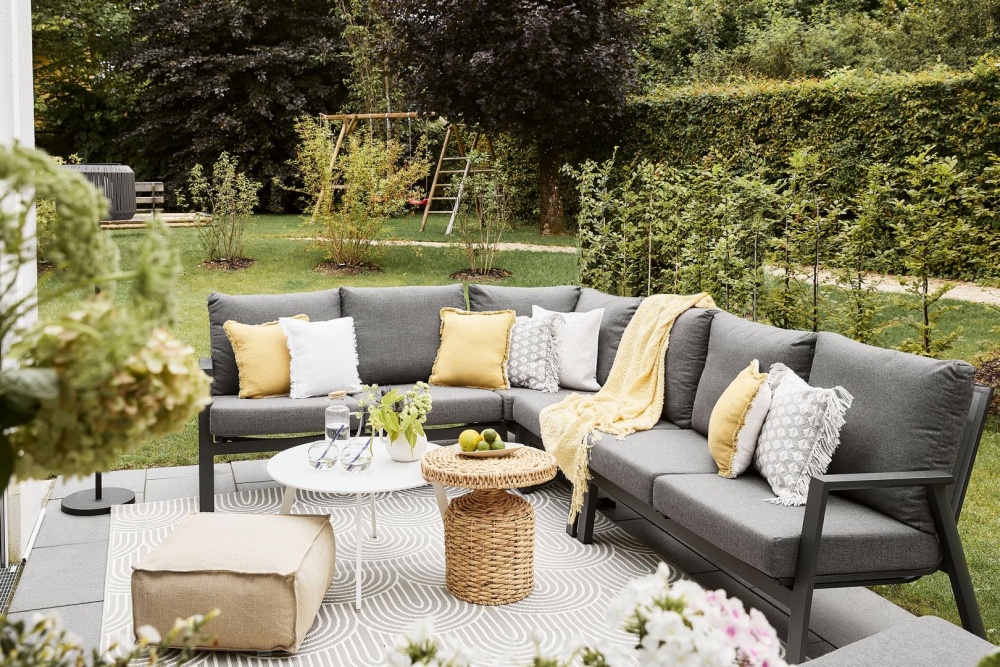 „Náš styl je 90% Westwing,“ prozradil Maxi Hörl, pro kterého je zahrada tím nejdůležitějším místem. Stejně jako obývací pokoj, ve kterém se rozhodli si vybrat modulový typ pohovky, protože jednotlivé moduly jim umožní měnit styl. Verena ráda kombinuje různé vzory, barvy a materiály polštářů, aby vytvořila osobitý vzhled.“