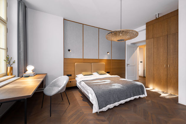 Především jsem musela pracovat s tím, že byt se nachází ve starém činžovním domě se špaletovými okny a vysokými stropy. Nechtěla jsem to všechno popřít a ignorovat a pustit se do nějaké ultra moderny v minimalistickém pojetí. Ani nebyl důvod, sama mám starou zástavbu moc ráda. Nechtěla jsem ale ani vytvářet nic historizujícího, konzervativního nebo elegantního, protože taková naše rodina není. Proto jsem se pustila do kombinace tradice a soudobých prvků.