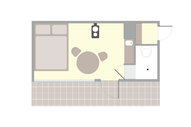 Jeden pokoj s ložnicí, kuchyní, sprchou, toaletou i technickou místností – to vše na pouhých dvanácti metrech čtverečních a s impozantním výhledem do čisté přírody Jizerských hor. Odpočívat můžete i na malé terase, která přechází v nikde nekončící zahradu…