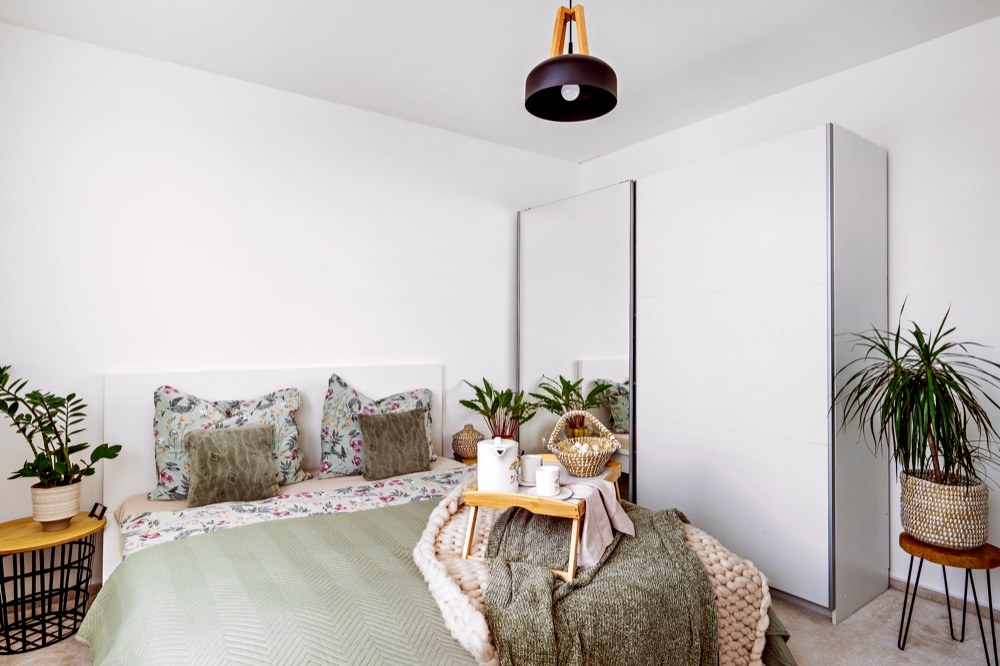 V poslední době se Míša zamilovala do ratanu a nakupuje ratanový nábytek a doplňky, které svým stylem do interiéru pěkně zapadnou. Za zmínku stojí i originální masivní postel v ložnici vyrobená z trámů, kterou pořídila u firmy Nábytek Mirek. S ložnicí sousedí prostorná šatna a k posteli ještě přibude ratanová skříň. Zařizování byl pro Míšu příjemný proces, který uskutečnil její dlouhodobé plány a sny. V domě je toho k obdivování opravdu mnoho.