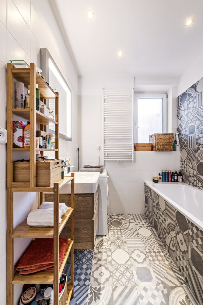Ačkoli byla po důkladné rekonstrukci před deseti lety stále moderní a pěkná, původní staré odpady prosakovaly do mezipatra, a tak bylo nutné je kompletně vykopat a vyměnit. A když už se koplo, rozhodla se Anička i pro novou tvář koupelny.
