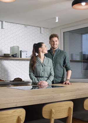 B: Kuchyň je pro nás vlastně nejdůležitější místo v bytě, a to hned z několika důvodů. Jednak rádi a hodně vaříme a jednak se vařením částečně i živíme – natáčíme recepty. Na kuchyňskou linku jsme tak měli poměrně konkrétní požadavky, díky kterým měla všem našim potřebám plně vyhovovat a zároveň být dostatečně fotogenická. Jednou z nezbytností byl například velký kuchyňský ostrůvek.