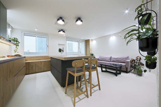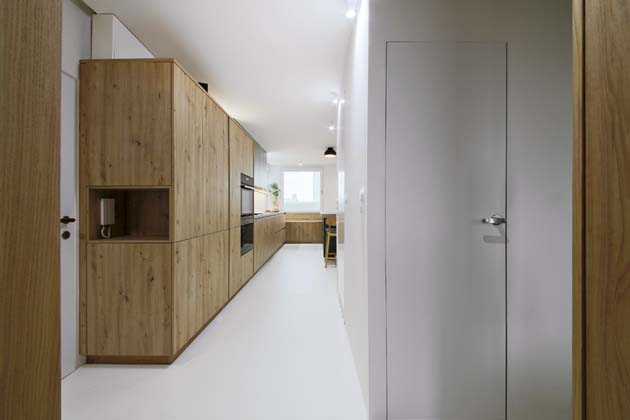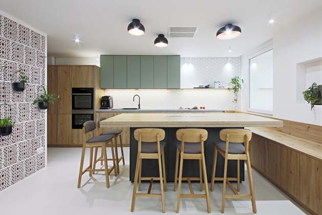 B: Pan architekt samozřejmě celou dobu dbal na to, aby kuchyň ladila se zbytkem bytu.