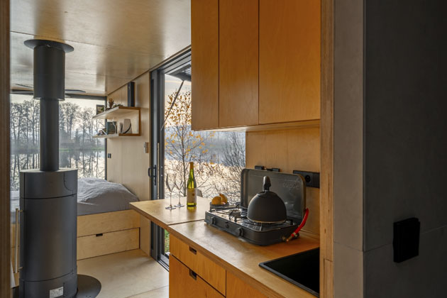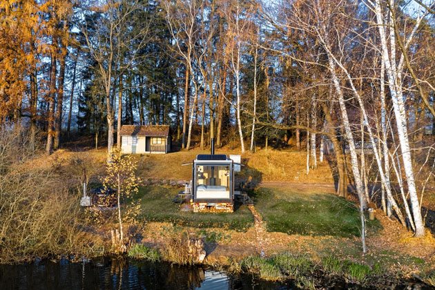 Obytný kontejner KEBIN je zaparkovaný u rybníka nedaleko obce Ondřejov na Pelhřimovsku. I když má vnější rozměry jen 2,6 × 7 metrů, disponuje netušenými možnostmi. Má ložnici s nekonečným výhledem a otočným krbem, kuchyňský kout, koupelnu s toaletou a sprchou a dvě malé terasy.
