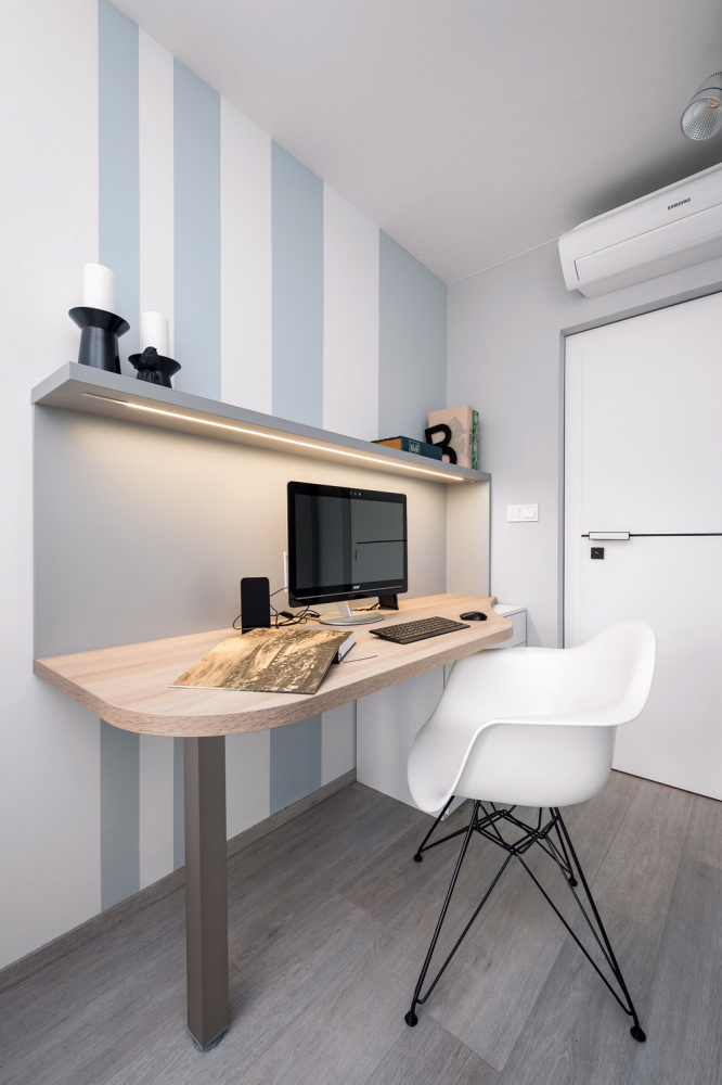 Původní plán interiéru jako ze sci-fi filmu designérka lehce poupravila, aby se v něm Michalovi a jeho dvěma dětem žilo příjemněji. Záměr minimalistického bytu s minimální údržbou ale do puntíku dodržela.