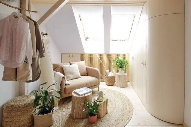 Tato přání jsme sladily s tím, jak na nás působily podkrovní pokoje v krásném stavení na kraji vesnice, obklopené čistou přírodou, a skvělá paní domu s pohodovou a laskavou povahou. Tentokrát byla tedy tvorba barevného a materiálového schématu velmi přirozená a snadná,“ uvádí architektky. „Na zakázce byla opravdu radost pracovat. Když máte netradiční a zajímavé zadání, úžasného klienta, se kterým jste na jedné vlně, a šikovné ruce, které vaše nápady svědomitě promění ve skutečnost, je práce architekta tou nejkrásnější prací ze všech.“