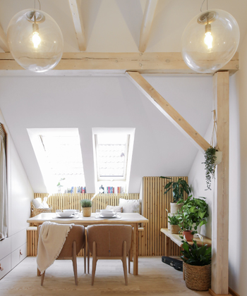 V malebné vesnici Strýčkovice na Domažlicku vznikl netradičně řešený podkrovní byt, primárně určený pro rodinné hosty paní majitelky, především dceru a vnoučata. O unikátní výsledek v podobě multifunkčního prostoru plného nápaditých vychytávek se postaraly čtyři mladé architektky z pražského Apaté studia.