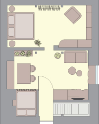 Paní majitelka měla v patře domu dva průchozí pokoje, které potřebovala lépe přizpůsobit svým požadavkům a potřebám svých hostů. Přála si plně funkční prostor pro svou rodinu, která ji navštěvuje, a také klidné a útulné místo sama pro sebe.