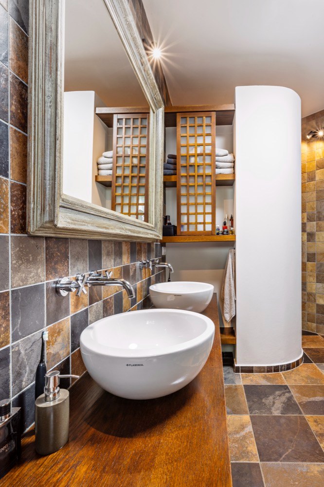 To opravdu byl záměr. Od začátku jsem věděla, že chci dokonale relaxační koupelnu v tmavém provedení, která pro mě bude místem odpočinku. A protože naše děti mají svoji koupelnu v patře, mám v ní i soukromí. Je to místnost, kterou doslova miluju.