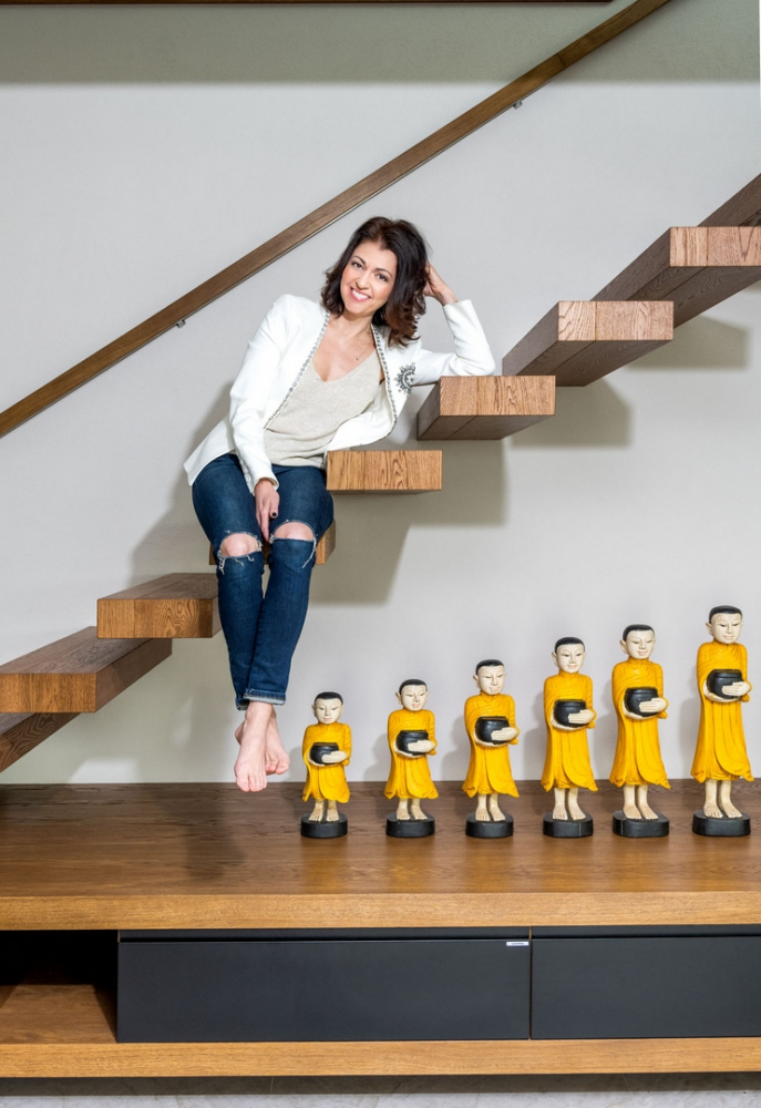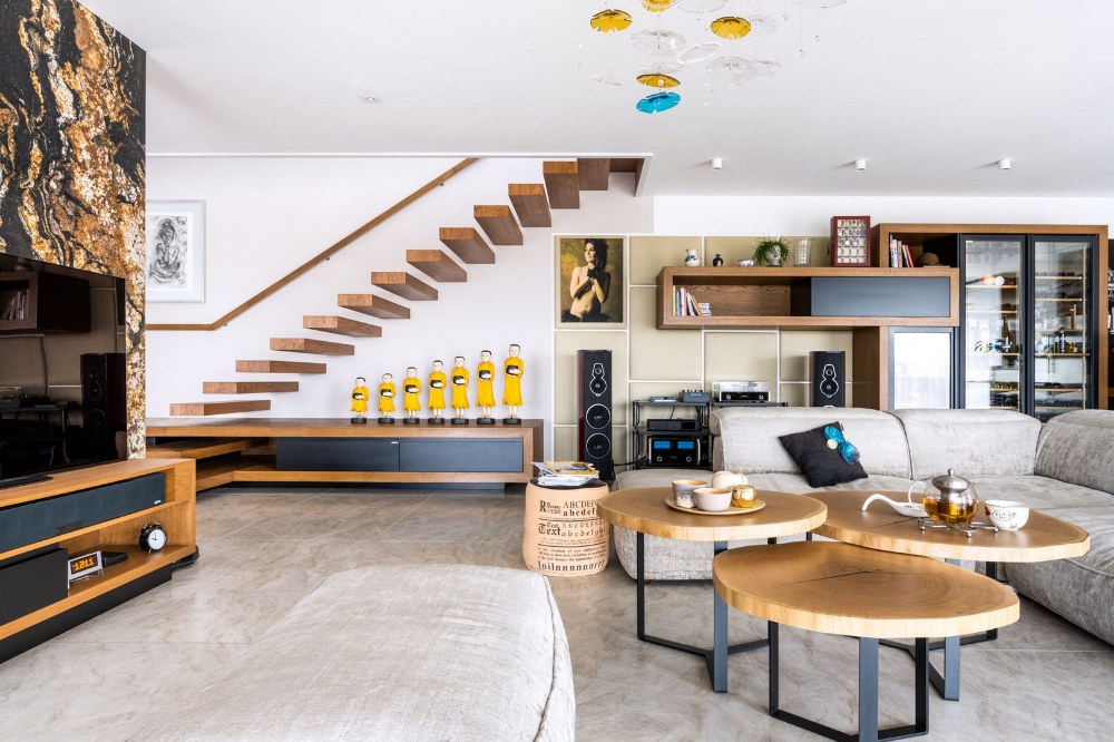 Mám ráda, když znám cestu k produktu. Tento požadavek vyšel z mé současné profese moderátorky Receptáře i z bývalé, kdy jsem jako reportérka navštěvovala různé dílny, továrny a malovýroby, kde jsem se setkávala s fortelem a poctivým českým řemeslem. Tohle opravdu moc obdivuji. Také musím zmínit známou českou fotografku Annu Mrázek Kovačič, která nám pomáhala s výběrem dekorací, doplňků i s nábytkem. Anna nám třeba vybrala sedačku do obýváku. Fíglem je, že takovýhle „boban“ který „sedí“ uprostřed tuto opravdu velkou místnost dokáže zútulnit.