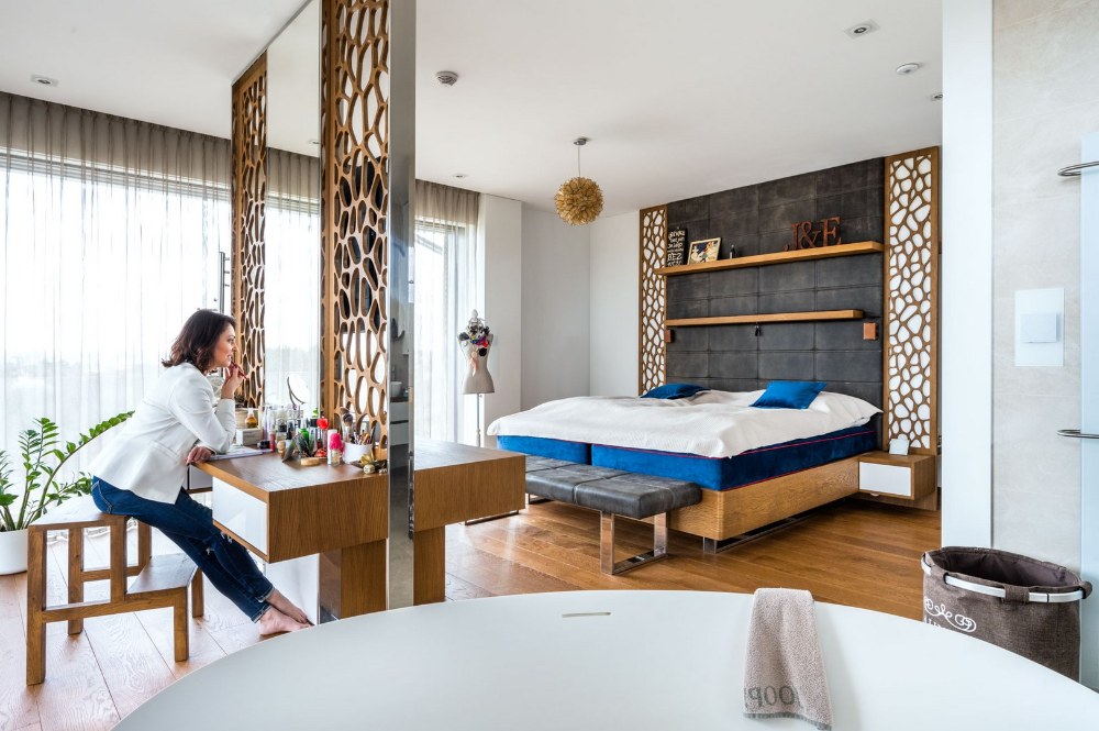 Koupelna v ložnici je také dost netradičním řešením. Kde jste se inspirovali?