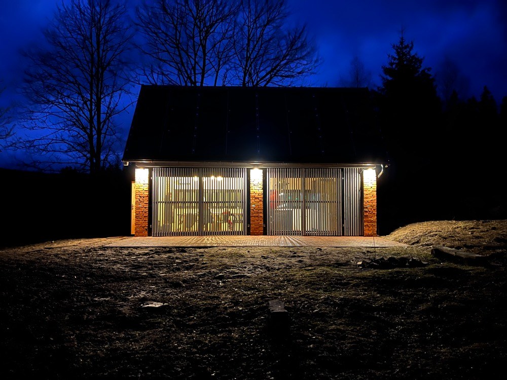 Otázkou bylo, jakým způsobem začlenit soudobé architektonické pojetí do přírodního prostředí s tradiční architekturou a urbanismem. Střetávala se zde touha majitelů po vizuálním otevření stodoly výhledům do okolí se zachováním tradiční formy při pohledu na objekt z okolní krajiny. Bylo zvoleno řešení s předsazenou dřevěnou fasádou tvořenou latěmi s mezerami, která umožnila kontinuální vizuální propojení s exteriérem a zároveň potvrzení vizuálního archetypu stodoly v daném místě. Použity byly tradiční materiály v soudobých variacích. Hlavními prvky uplatněnými v exteriéru i interiéru jsou dřevo, cihla a šindel. I když jsme odpůrci používání imitací, zde přišla imitace šindelové střech v plechové variantě vhod. Společně s ostatními materiály tvoří harmonický celek zapadající do okolního prostředí, což je největší hodnota daného místa. Navíc, toto provedení bezpečně odolá složitějším klimatickým podmínkám.