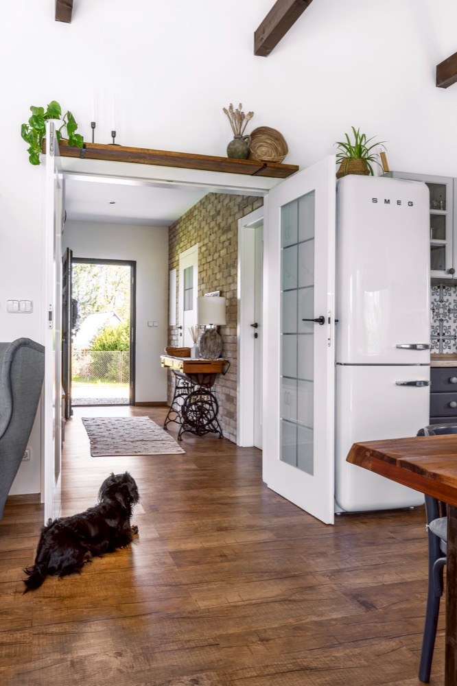 Mám velmi blízko ke starým věcem. K této lásce mě přivedl tatínek, který rád sbírá staré kousky jako třeba starý šicí stroj Pfaff, stojící v předsíni, nebo telefon z první republiky, zatím čekající na půdě, lucerny z uhelného dolu či staré váhy. Dodnes ráda chodím do vetešnictví a secondhandů. Můj styl je vlastně kombinace retra, vintage a nových kousků, která má nejblíže k chalupářskému či venkovskému stylu, některé kousky by zapadly i v boho či scandi interiéru. Nemáme rádi plast a snažíme se mu v interiéru vyhýbat. Miluji dekorace ze showroomu Marka Obadala, jako je například lampa v předsíni.