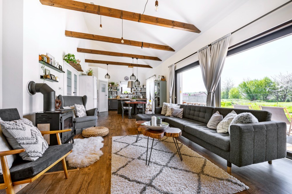 Prostorný obývací pokoj s krbem a velkými okny, která jsou strůjcem již zmíněného úžasného světla, je určitě sen nejednoho našeho čtenáře.