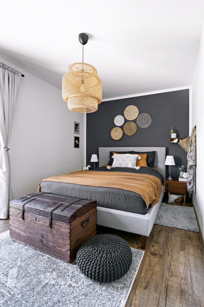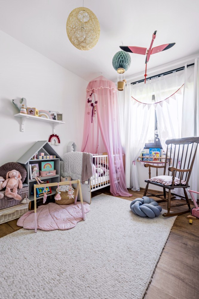 Největší radost mi dělá pocit útulnosti, který zažívám pokaždé, když se odněkud vrátíme a já rozsvítím lampičku na chodbě. To mám pocit, že jsme přijeli na chalupu. Ráda ležím ve vaně při svíčkách anebo si při rozsvícené lampičce čtu v ložnici. Od té doby, co brzy ráno vstávám ke Glorince, miluji na našem domě i světlo, které má kolem šesté ráno, v kombinaci s vůní čerstvé kávy. Inspiraci čerpám hlavně z Pinterestu a Instagramu, a to většinou z holandských, britských, polských nebo severských domácností, i když se už najdou i krásné české profily. Mým nejoblíbenějším kouskem je vitrína na kuchyňské poklady, kterou mi manžel koupil doslova za pár kaček na Marketplace na Facebooku, odkud jsou i noční stolky, které jsme lehce zbrousili, navrtali nové nohy a doladili koženými úchytkami z harv.cz. Postel s vysokým čelem, o které jsme měli taky od začátku jasno, jsme pořídili na bonami.cz. Lustry do kuchyně na alhambra.cz a textil na favi.cz, bonami.cz