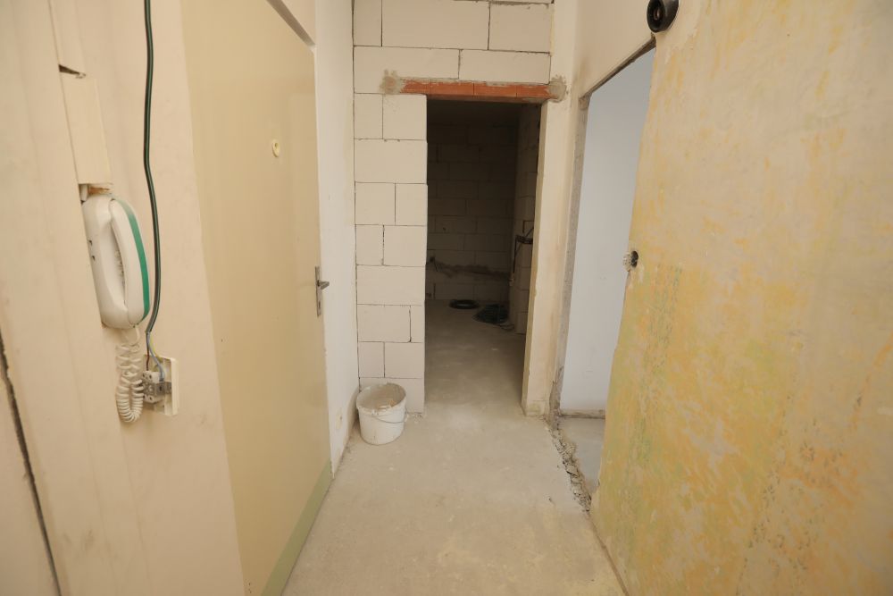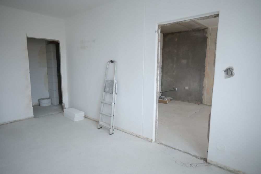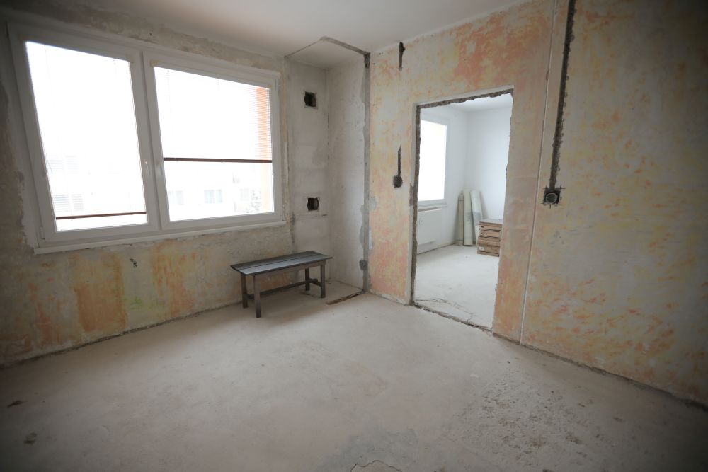 Paradoxně největším problémem byla rozestavěnost prostoru, do kterého jsme prvně vešly. Skutečnost, že bylo nejen vybourané původní jádro, ale dokonce už postavené nové, nám dost zamotala hlavu. Řešily jsme, jestli právě dokončené jádro vybourat, nebo ponechat a provést jen v rámci něj změny, které by z původně nevhodně navržené koupelny udělaly funkční, maximálně využitou místnost. Také vysekaná elektřina, po které zbyly ve stěnách díry a panely oškrábané na beton, znamenaly pro nás obrovské množství práce, které v rámci zamýšlené kompletní rekonstrukce bytu nebylo možné fyzicky zvládnout. Proto se nám nakonec ulevilo, když se s rodinou podařilo domluvit součinnost tak, abychom na jejich práci plynule navázaly a celou proměnu měly šanci stihnout.
