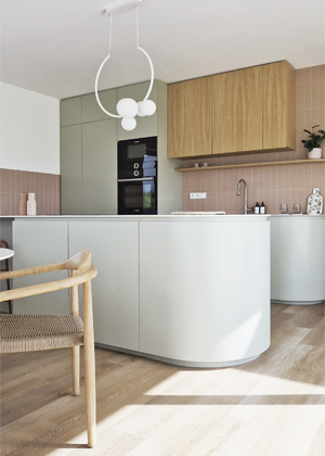 Zaujaly mě oblé tvary a velmi tenká pracovní deska v kuchyni...