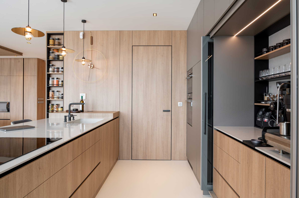Byt vzniklý propojením dvou samostatných jednotek o celkové ploše 248 m² byl navržen pro mladou rodinu. Architekti ze studia SALPIETRA & GAJDOS architects – mezinárodního dua působícího od roku 2012 – vystavěli koncept na důsledném výběru materiálů v harmonii s lokalitou i životním stylem klientů tak, aby vyzařoval klid a eleganci.