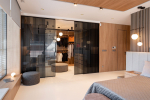 Posuvné dveře IDEALINE VERTICAL přirozeně oddělují ložnici se zázemím