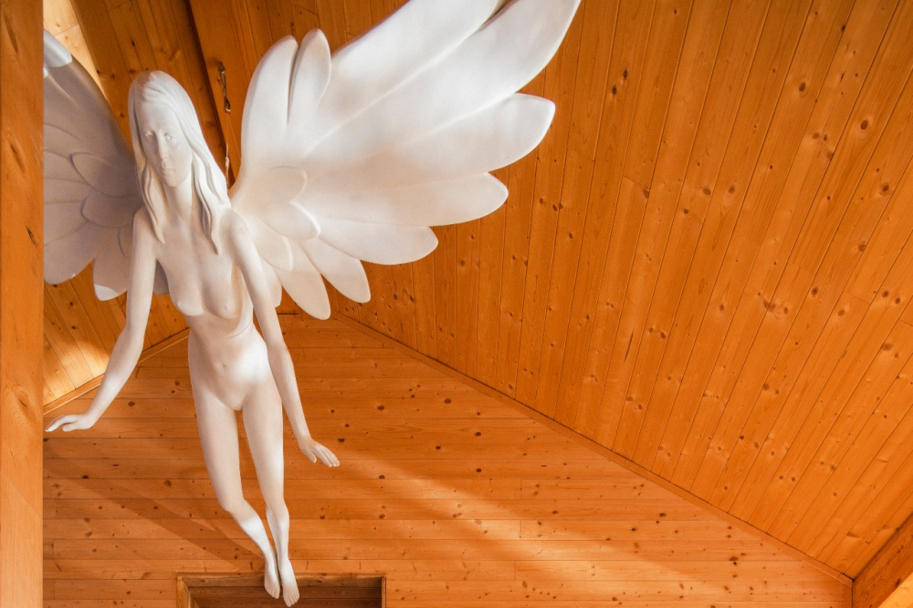 Nad celým domem pomyslně bdí velká plastika bílého anděla zavěšená nad zastřešeným automobilovým stáním s kamennou dlažbou, která prostupuje do východní části zahrady. „Myslím, že už se mi jen tak nenaskytne příležitost navrhovat stavbu na tak úžasném místě a s klientem, který ví, co chce. Byla to moc zábavná práce,“ vzpomíná na závěr na proběhlou stavbu Ing. arch. Lukáš Pejsar. Jestli někdo netušil, jak zhmotnit genius loci, tak zde se to podařilo.
