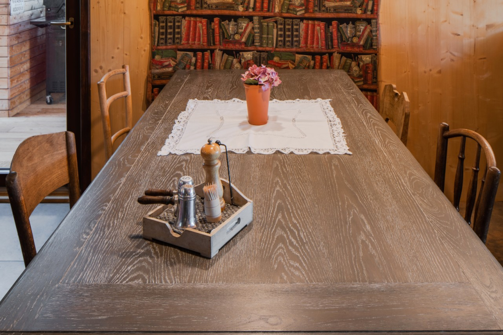 Dominantou hlavního prostoru je kamenný krb se starým trámem, která připomíná položení základního kamene původní stavby. Tedy latinsky Léta Páně 1992. Na římse je spoustu drobných dekorací. „Žádná věc tu není nahodilá, každá má svůj příběh. Mám rád hezké věci, celý život rád chodím po bazarech, a co mi přijde zajímavé, to koupím,“ říká s úsměvem majitel. Zákoutí za krbem tvoří malý dřevěný starožitný pracovní stůl se židlí z ohýbaného dřeva.