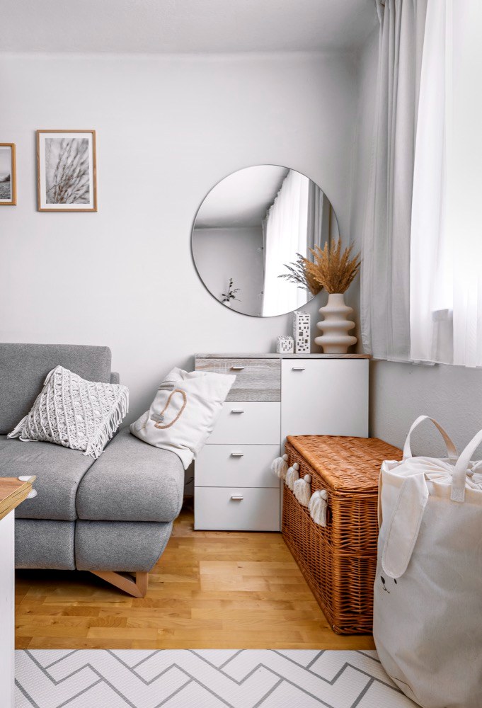 Mám ráda jednoduchost, světlé, teplé tlumenější barvy, přítomnost dřeva a vůni domova. A na prvním místě je u mě originalita. Vsadila jsem na skandinávský styl s lehkým nádechem boho tématiky. Než se ze mě stala máma na plný úvazek, pracovala jsem jako zdravotní sestřička na kardiochirurgii, takže bílá barva mě provázela i předtím, ale sterilitu u mě nehledejte. I u nás to občas vypadá jako „po výbuchu“.