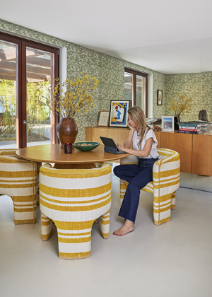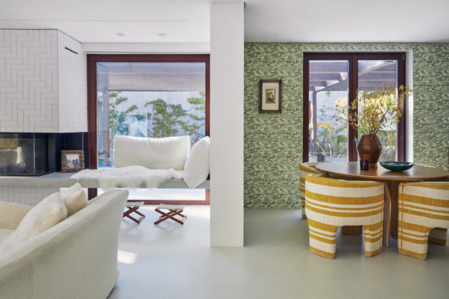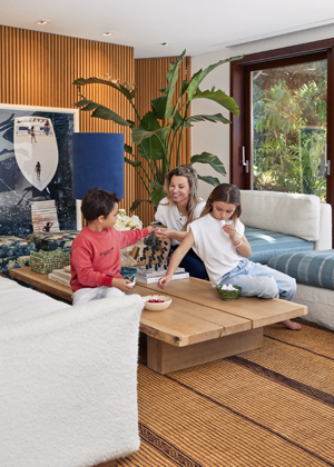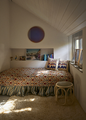 Prostor dostaly i nápadné vzory, přírodní ratan či barevné sklo – vše poměrně výrazné designové prvky, které společně nenápadně vytvářejí dojem komfortní klasiky minulého století. Vzhledem k tomu, že rodina designérky pochází z Amsterdamu, v Portugalsku si všichni členové mimořádně užívají pobyt venku. Svou zásluhu na tom má především prostorná zahrada přiléhající k domu, ve které nechybí bazén ani štědrý prostor pro posezení a dětské hry.