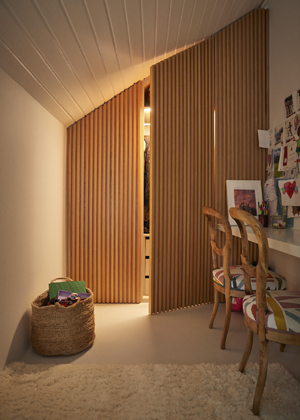 Ta se projevila především důmyslnou kombinací nestárnoucí klasiky s mimořádně moderními prvky, což je dobře patrné především při pohledu do obývacího pokoje. Tomu dominuje keramickými kachlíky obložený krb a mimořádně pohodlná prostorná pohovka přímo stvořená pro lenošení. „Jednou z výzev tohoto domu pro mě byl fakt, že je velmi moderní. Bílé stěny v kombinaci s bílými stěnami nabízejí ale dost prostoru pro kreativitu,“ nastínila autorka hlavní důvody, proč se interiér rozhodla zateplit tapetami a dřevěným nábytkem.