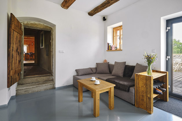 Po letech začal na statku hospodařit Antonínův otec, který se věnuje ekologickému zemědělství. Když se vypisovaly dotace na rozvoj agroturistiky, zrodil se mu v hlavě nápad, že by se objekt zrekonstruoval a začal fungovat jako chalupa k pronajímání. Svěřil se synovi a Antonín si to vzal za své. S ohledem na podmínky, které je k dotaci nutné splnit, věděli, že na ni dosáhnou. Začali tedy oslovovat architekty, vznikaly první studie v různých variantách, a když si vybrali tu finální, zajistili si stavební povolení a podali žádost o dotaci. V září roku 2014 se pustili do realizace rozsáhlého projektu a díky tomu, že podmínkou dotace bylo dodržení určitého termínu, se už v dubnu 2015 kolaudovalo. Samozřejmě, že objekt nebyl v takto dokonalém stavu, ale to zásadní bylo hotové a mohlo se začít s dolaďováním krásných detailů, které daly domu osobité kouzlo.