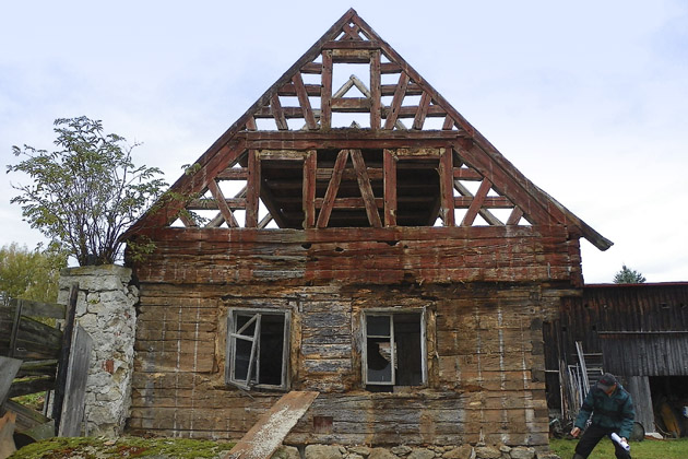 Po ujištění, že tuhle roubenku určitě chceme našim čtenářům představit, jsme si popovídali s panem Antonínem, který je synem majitele a stojí za rekonstrukcí objektu a jeho provozováním. Stáří částečně zděného a roubeného stavení s hrázděným štítem odhadují památkáři na 200 až 250 let. Na dřevěné stodole je vytesán letopočet 1916. Podle některých indicií se Antonín domnívá, že roubenka byla součástí nějakého většího objektu. Pro možnou rekonstrukci se ale dochovala jen roubenka se stodolou, které v 50. letech koupili majitelovi rodiče, kteří bydleli v kamenném domě naproti přes ulici. Potřebovali rozšířit své hospodářství, a tak statek, který už byl tou dobou určený k demolici, za pár tisícovek koupili. Sám Antonín jezdíval k prarodičům na prázdniny a pamatuje si, jak chodil s dědou do přízemí chátrajícího stavení krmit prasata a slepice a do maštale ovce.