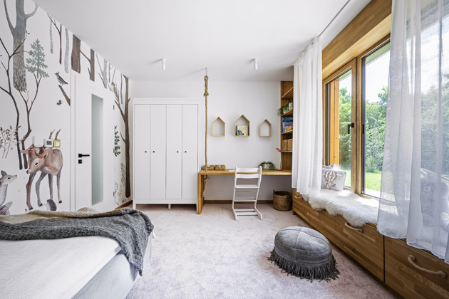 Foto: Lukáš HausenblasV době, kdy do realizace domu vstoupila designérka, nebyl už interiér nepomalovaným plátnem, ale měl položené podlahy, hotové koupelny a kuchyň integrovanou do obývacího pokoje. Vzhledem k tomu, že paní Iva ráda zabydluje a zútulňuje, její zadání směrem k designérce znělo poměrně jasně. Použít co nejvíce přírodních materiálů, tedy jít na to, jak se říká, přes přírodu, ale tak, aby interiér ve výsledku nepůsobil chalupářsky, ale příjemně zabydleně, a přitom moderně. Manželé mají dvě malé děti, jsou akční rodina, bylo proto potřeba myslet i na praktickou stránku. Interiérová designérka říká „Nejvíce mě inspirují samotní klienti. Snažím se jim ‚vlézt‘ do hlavy, poznat je a nechat jim prostor se vyjádřit, což u této dvojice nebyl problém, protože oba jsou velmi milí, vstřícní a navíc jsme v podobném věku.“