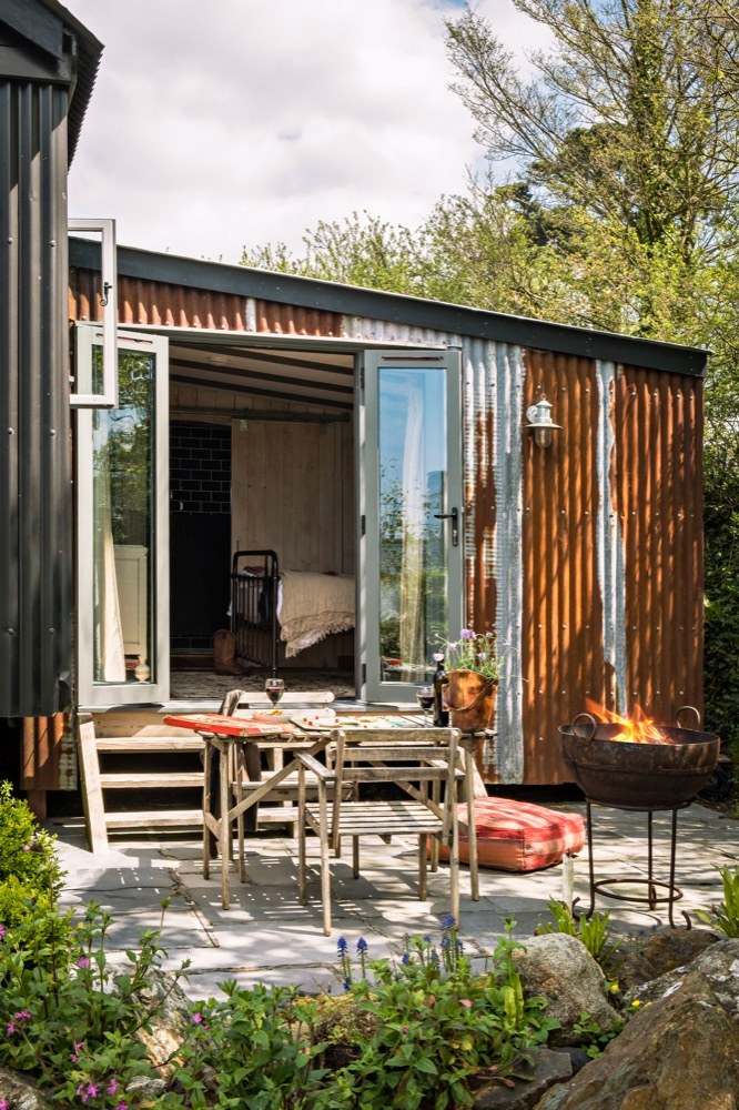 Jmenuje se Sundance a stojí u moře v klidném koutě severního pobřeží anglického Cornwallu. Je to místo jako stvořené pro dobrodruhy i pro ty, kteří touží po nevšedním ubytování ve skromnějších podmínkách. Základ tvoří ručně vyrobená maringotka, na jejíž zádi je vybudovaný přístavek s ložnicí a koupelnou. Přední část domku na kolečkách rozšiřuje dřevěná přístavba sloužící jako pergola a zimní zahrada v jednom. Tento přístavek vyúsťuje do polodivoké mírně svažité zahrady plné bylinek, skalkových sukulentů, náprstníků a okrasných travin.