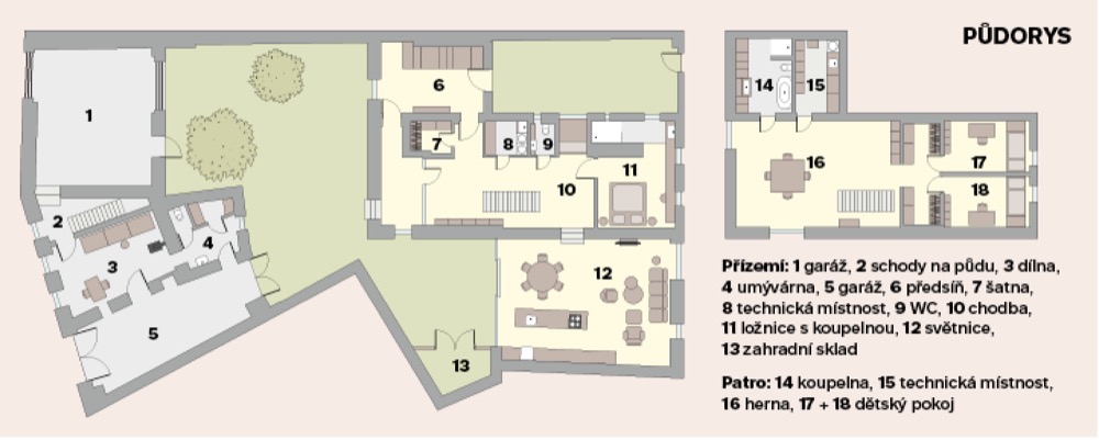 Svérázný charakter Kozinova náměstí skýtající ideální polohu – pár kroků od centra, přitom kryté před dopravním ruchem, učaroval architektům Barboře a Jiřímu -Weinzettlovým, kteří zde koupili malý domek se záměrem vytvořit si z něj víkendové bydlení pro odpočinek a útěk z reality. O rok později se jim však naskytla příležitost odkoupit dům naproti přes zahradu, což od základu změnilo jejich původní plán. Dvě samostatné stavby propojené zahradou proměnili ve své trvalé útočiště.