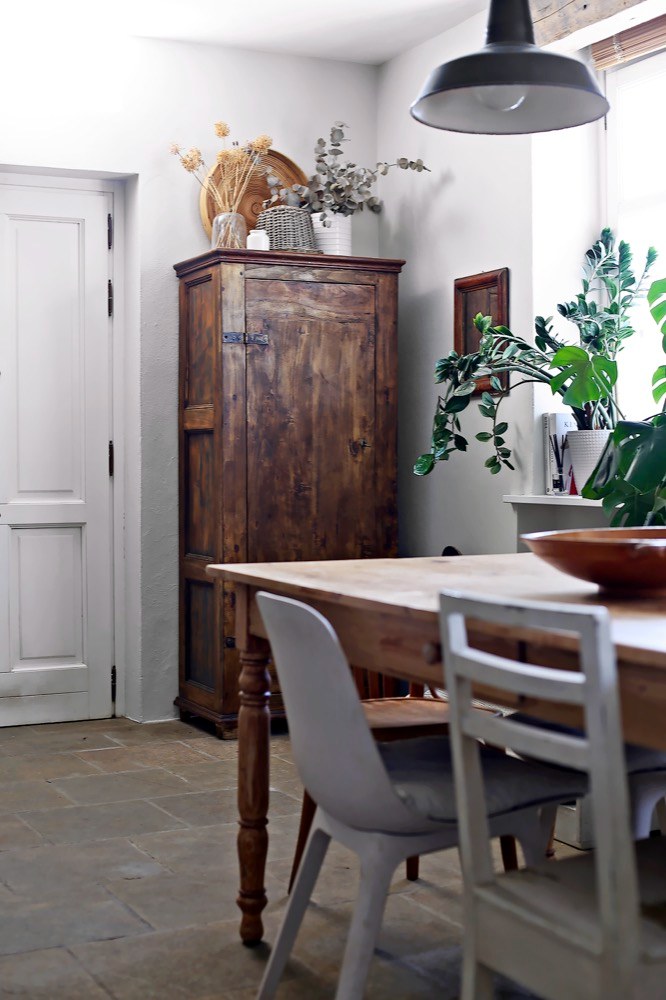Je mi k smíchu, když si pomyslím, že jsem pár let předtím, než jsme se nastěhovali do tohoto domu, vlastnila pouze malou rostlinu v kuchyni, protože jsem si myslela, že květinám nerozumím. Začala jsem kupovat další rostliny a uvědomila jsem si, že se mi líbí se o ně starat, najít pro ně vhodné místo a dát je do správného prostředí. Teď nechápu, jak jsem bez nich mohla žít. Říkám, že zelená se hodí ke každému stylu a do každého domova, to je můj recept.