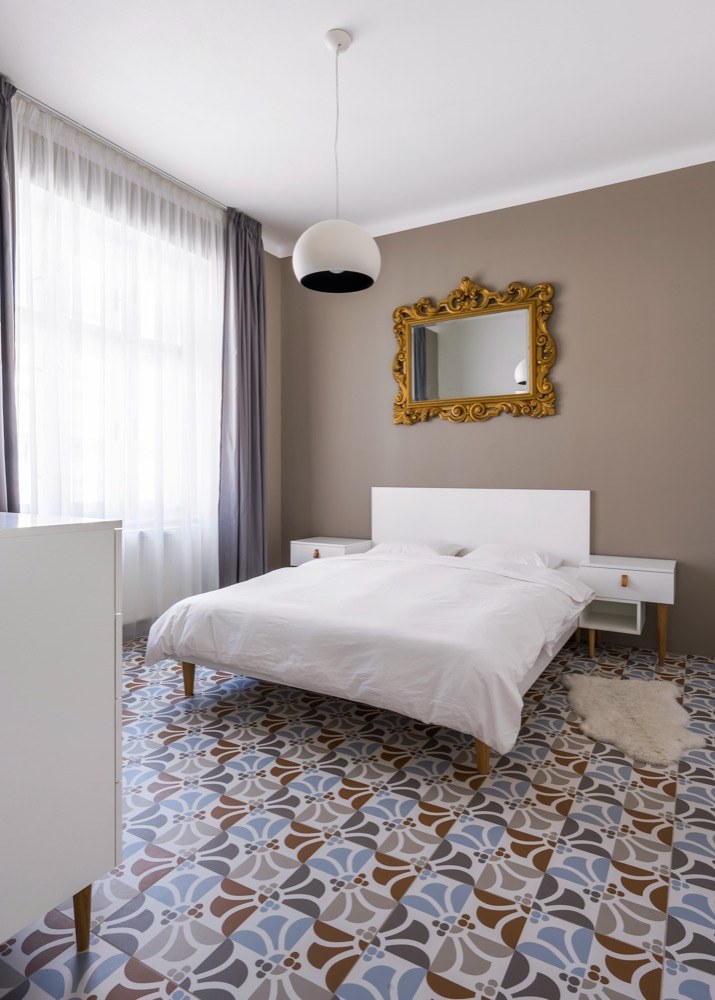 Se svým mužem tvoří designérka Kristýna velmi schopný tandem a výsledkem jejich společné práce je vždy nějak zajímavé a vkusné bydlení. Příkladem toho je i zrekonstruovaný byt určený k pronájmu. Byt s dispozicí 2+1 s užitnou plochou 54 metrů ve starším činžovním domě nebyl v dobrém stavu, a tak bylo nutné v něm udělat důkladnou rekonstrukci. Majitelé ho chtěli také zmodernizovat a přizpůsobit tomu, aby nabízel funkční, nadčasové a příjemné zázemí pro budoucí nájemníky. Ač má Kristýna ekonomické a technické vzdělání, již mnoho let se zabývá interiérovým designem a její počiny teď již veřejně nesou první velmi kvalitní ovoce. Právě díky svému vzdělání dokáže pracovat s rozpočtem, který majitel do realizace hodlá investovat. Při zařizování prý vždy začíná od podlahy. Prostor si promítne v hlavě, namaluje půdorys, navrhne jeho šikovné změny a vybere typ, barvu a vzor podlahové krytiny. Ta potom poslouží jako odrazový můstek pro další zařízení.