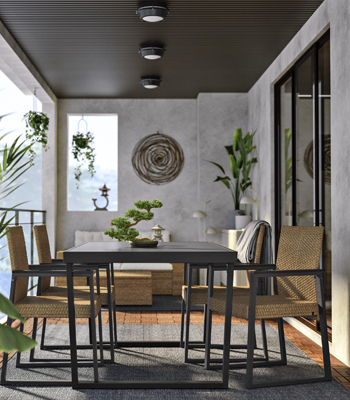 Foto: IKEAStůl a jídelní židle Värmansö (IKEA), lakovaný kov s výpletem z umělého ratanu, cena 16 450 Kč, www.ikea.cz