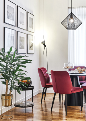 Cest, kterými se můžete vydat, je několik. Můžete pořídit stůl a židle ze stejné kolekce, ale doporučuji to pouze v případě, že se bavíme o ikonických kouscích, jako je například kolekce Tulip od Eero Saarinena. I zde lze aplikovat hru kontrastů: pokud máte tmavý stůl, rozhodněte se pro světlé židle, ke starožitnému stolu zvolte současné židle, a nikdy nepoužívejte stejnou barvu a stejný materiál!