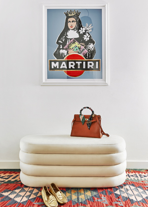 Ke vchodu jsem vložila dílo od neapolské umělkyně Roxy in the box, která vidí svět a Neapol očima pop-artu. Vybrala jsem si obraz s názvem A Martyr to Drink – Saint Patricia, postavu, kterou mám velice ráda.