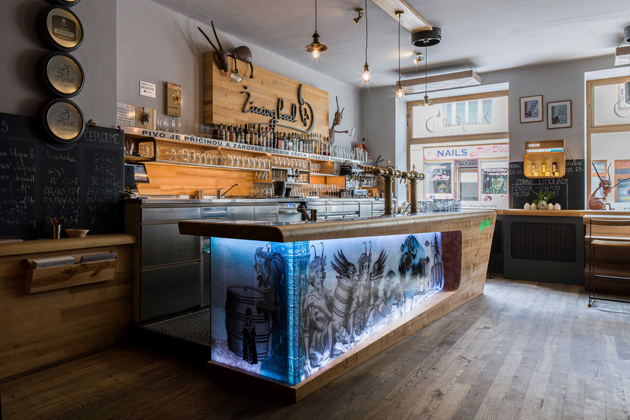 Výčepní pult s uměleckým dílem držitele Českého lva