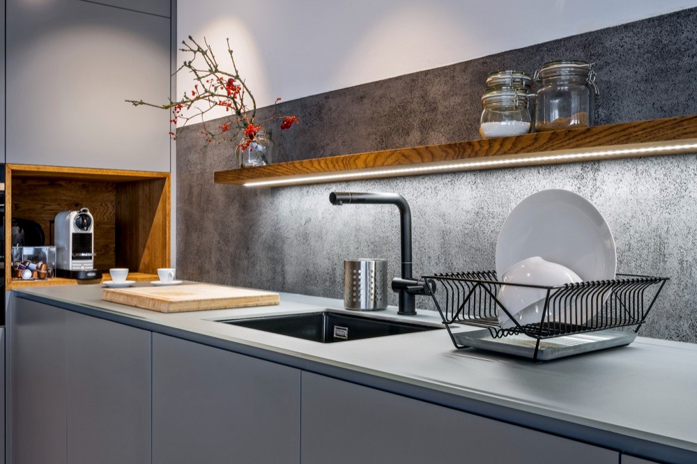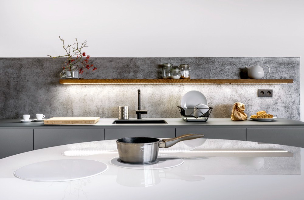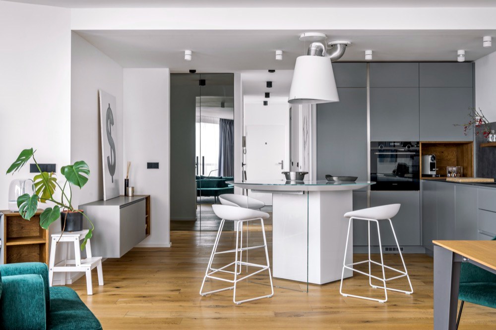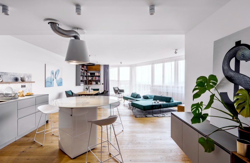 Designérka má ráda neobvyklá řešení, která tu zastupuje jídelní stůl a varné centrum v jednom. Tento „ostrůvek“ z kolekce Air Kitchen objevila u italského výrobce Lago a skvěle jí zapadl do celého konceptu. Skleněná deska stolu má v sobě zabudovanou indukční varnou desku, takže vaříte i servírujete na jedné ploše. Navíc je to skvělý prostor pro komunikaci při vaření a posezení. To vše korunuje ostrůvková designová digestoř s přímým odtahem. S ostrůvkem ladí celá kuchyňská sestava od brněnské značky Le Bon. Aby designérka zachovala jednotnou linku, v Le Bonu vybrala i nábytek do dalších místností. Středobodem hlavního obytného prostoru je mobilní sofa Alexa značky Furninova, které slouží na relax domácích i jako lůžko pro návštěvy.