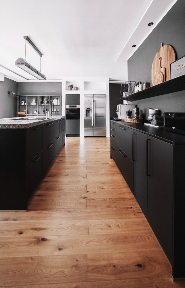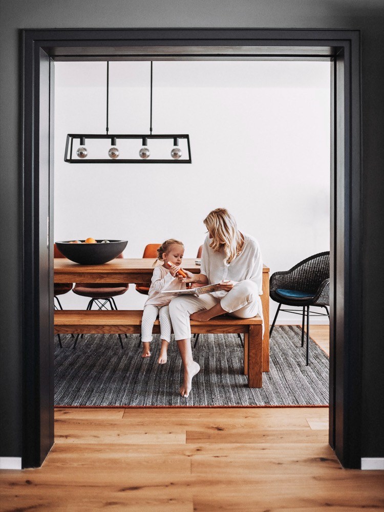 Terese se podařilo zařídit nadčasový interiér s jemným industriálním nádechem. Na první pohled je poznat, že ráda kombinuje klasiku s modernějšími prvky. Jako základ si vzala černou barvu, kterou pak různými způsoby doplňovala. Příjemných kontrastů dosáhla, když černou kombinovala s jemnými a lehkými textiliemi. Silnější akcenty zase dodávají do bytu některé dekorace. Při výběru zařízení vždy dbala na to, aby kupovala věci, které jsou z kvalitních materiálů a díky tomu i dlouho vydrží. Bylo pro ni důležité zařizovat stylem „krok za krokem“, tedy žít v každé místnosti tak dlouho, aby poznala, co se tam hodí natrvalo a co ne. Chtěla, aby byl jejich domov místem klidu a relaxace, kde budou moci dobít energii a stoprocentně se uvolnit. Například postel hledala takovou, aby se na ní dobře spalo, ale zároveň aby se tam někdy pohodlně vešla celá rodina. Takže neváhala připlatit za kontinentální lůžko s matrací s pružinovým jádrem od německého výrobce, který se zabývá výrobou postelí už 200 let. Velmi důležité pro ni bylo i vybavení dětského pokoje. Ten se stal kreativním koutkem, kde se najde místo pro spaní, mazlení, ale i pro skvělou zábavu. Je to takové malé království plné fantazie. Místem rodinného setkávání je prostorná kuchyň s ostrůvkem, u kterého můžou kuchtit všichni společně. To, co se uvaří, se pak může sníst v jídelně, v níž kraluje krásný stůl z masivu doplněný dřevěnou lavicí a židlemi. Jídelna je umístěná v místnosti společné s obývacím pokojem, odkud se vchází na prostornou terasu s venkovním posezením.