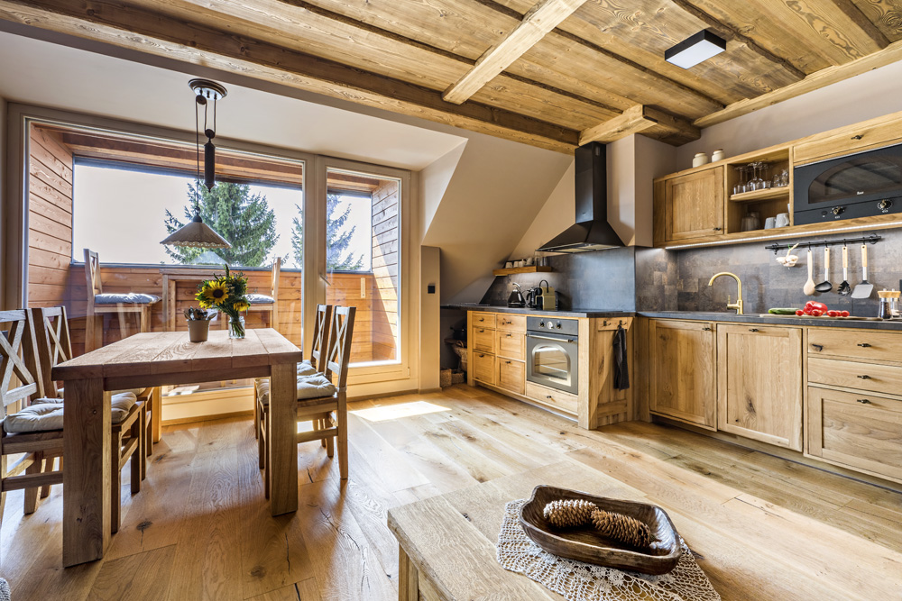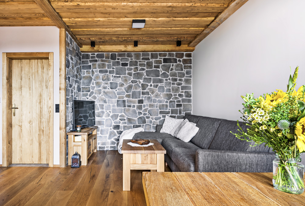 I když máme s mužem každý dost odlišný vkus, v případě apartmánu v nové krkonošské zástavbě jsme měli jasno, jakým stylem se budeme ubírat. Inspiraci jsme totiž sbírali v Itálii, a to ještě dřív, než jsme vůbec tušili, že se nám bude jednou hodit. V jedné italské restauraci, kam jsme chodili na jídlo po lyžování, se nám moc líbil stylový interiér, zařízený celý v dubovém dřevě.