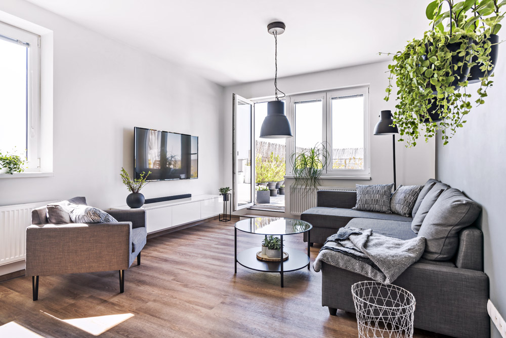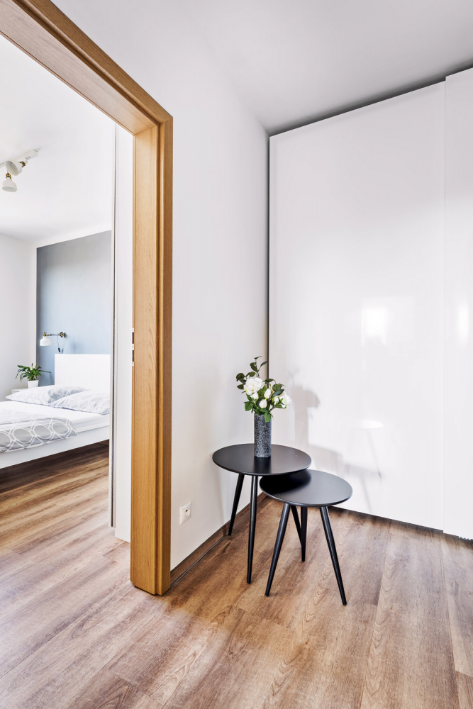 Zařízení bytu měla plně v režii Aneta. Jediné, na čem se s Martinem neshodli, byla podlaha. Aneta chtěla dekor betonu, což by působilo chladně, a tak přistoupila na Martinův návrh dřeva, které prostor pocitově zahřívá. Inspiraci k nadčasovému a střídmému interiéru čerpala z časopisů a z internetu. Líbí se jí bílá barva, která posloužila jako neutrální základ, k němuž ladila další vybavení.