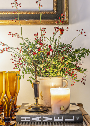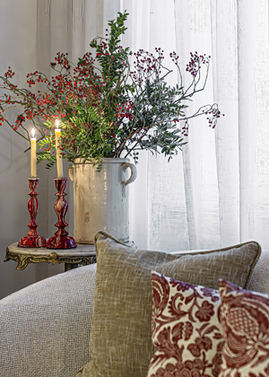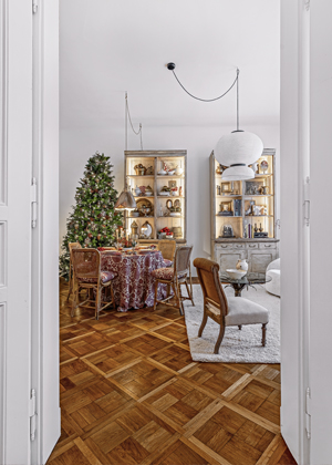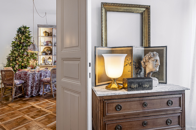 Rád vytvářím nadčasové prostory, kterým běh času neškodí, ale naopak je zkrášluje, proto se trendů nedržím. Rád je poznávám, ale nejsou výchozím bodem mých nápadů. V tomto případě hrají hlavní roli klasické vánoční barvy, tedy červená, zelená a barvy kovů. Starožitné zlaté a skleněné ozdoby, spousta přírodnin a zdobných detailů utváří dokonalou sváteční atmosféru.