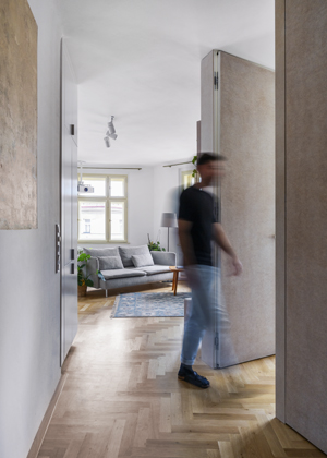 Architektonické studio Artikul se ujalo rekonstrukce bytu v rohovém historickém činžovním domě v pražských Holešovicích. Výzvou pro architekty byla i jeho výchozí nevyhovující dispozice s průchozími pokoji. Problém vyřešili rafinovaně a atraktivně.