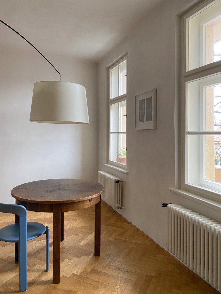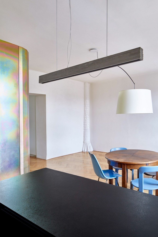Architekt Ondřej Janků ze studia Collarch společně s partnerkou a výtvarnicí Lenkou Kuchárekovou právě dokončil rekonstrukci svého bytu, ve kterém žijí společně s jejich malou dcerou. Původně historický byt měl nevyhovující dispozici stísněných pokojů a bylo třeba jej přizpůsobit současným požadavkům bydlení mladé rodiny.